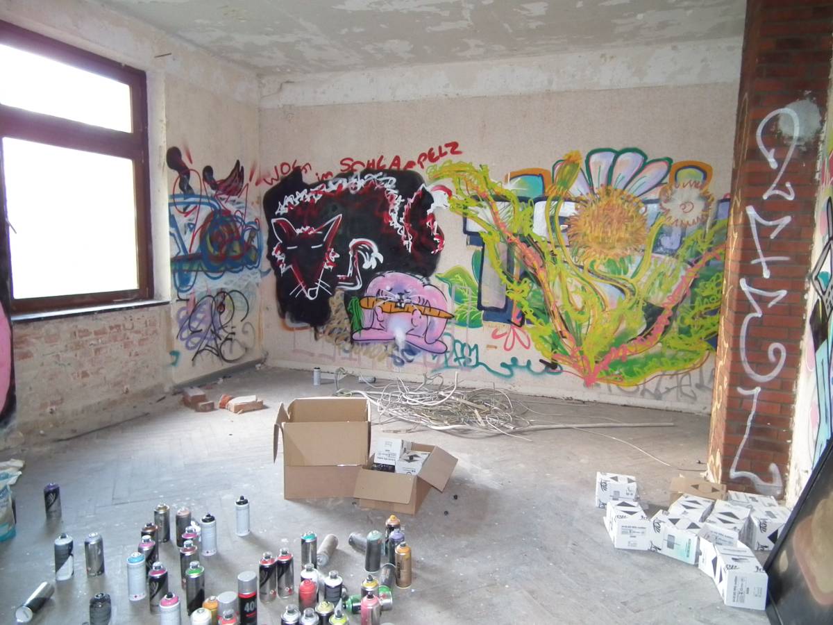 - bei ca. 1.200 m² Wänden Tapete abgekratzt, losen Putz absgeschlagen, neu verputzt, gestrichen.